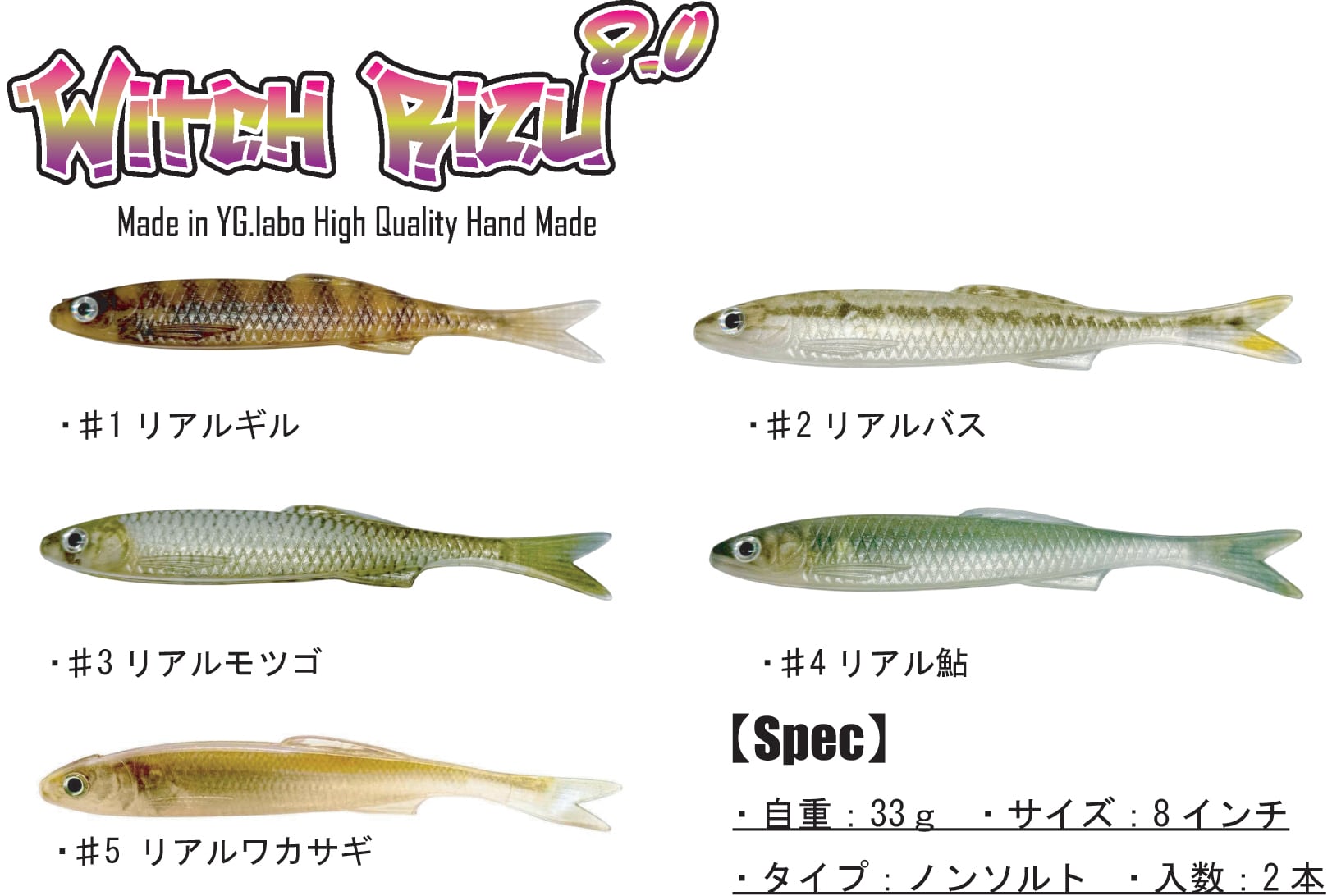 ・自重:33g ・サイズ:8インチ