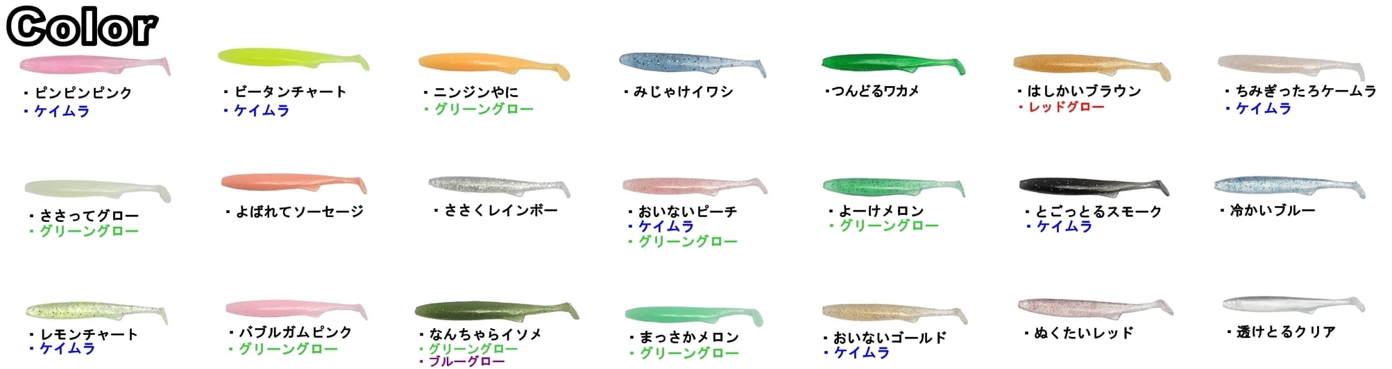 ・サイズ:2.5inc ・カラー:21色 ・タイプ:ノンソルトタイプ ・重量:約0.8g